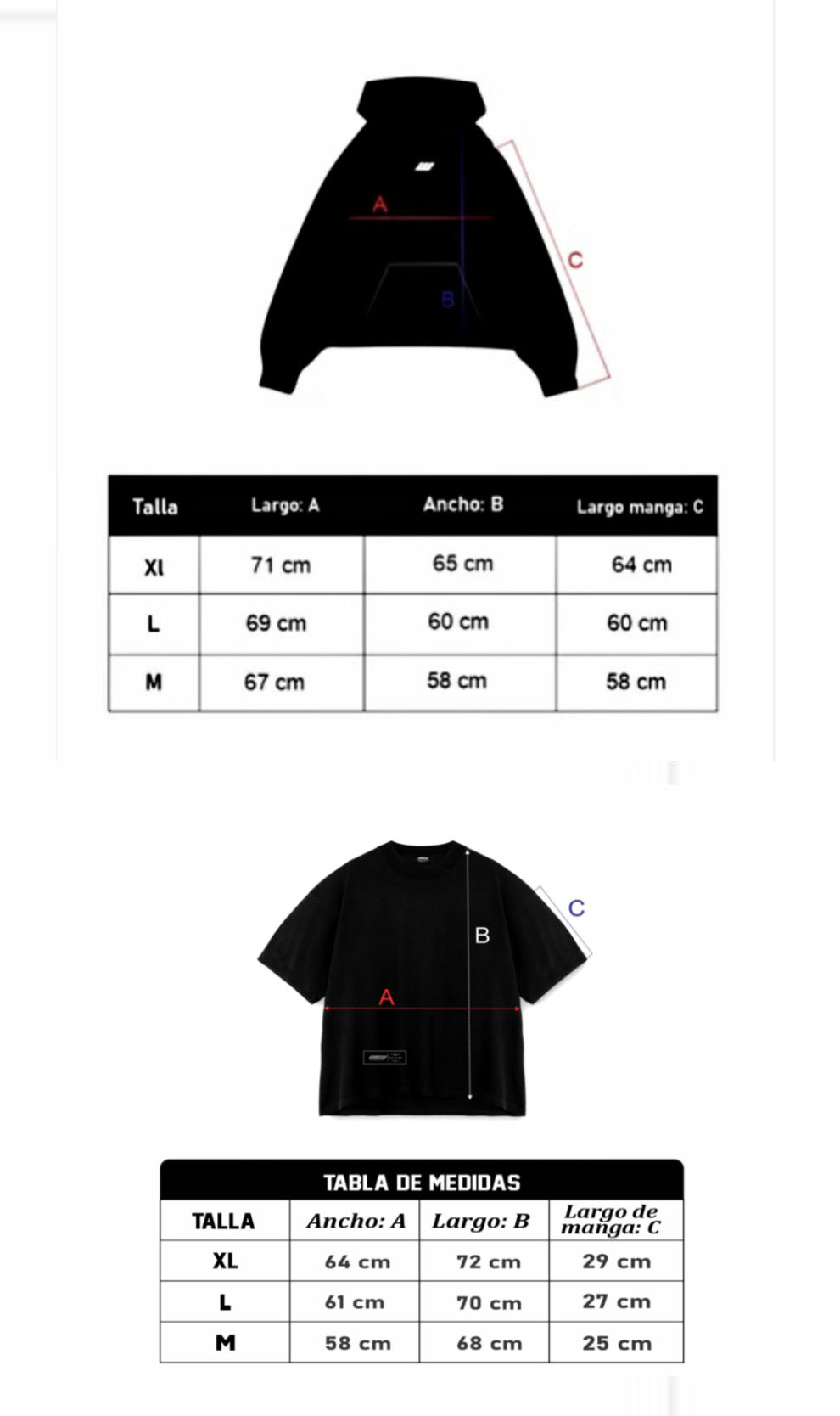 Los modelos miden 1.79cm y 1.70 y utilizan talla L